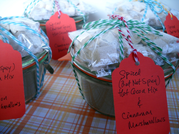 Packaged in sweet little Weck jars, topped with a baggie of mini-marshmallows, and tied up with brightly colored twine, a gift of Spiced Hot Cocoa will put a smile on the face of even the Grinchiest person on your list. I paired mine with these ridiculously adorable cards from inkylivie on Etsy.