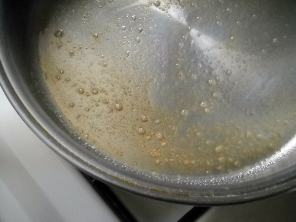 - In a large, light-colored skillet, melt the butter over medium heat. Swirl it around a bit as it melts, just to keep it cooking evenly. It’ll foam, and when the foam subsides the magic begins. Continue to swirl the pan occasionally, but leave it alone otherwise—just watch it, since once the color starts to change it darkens quickly.