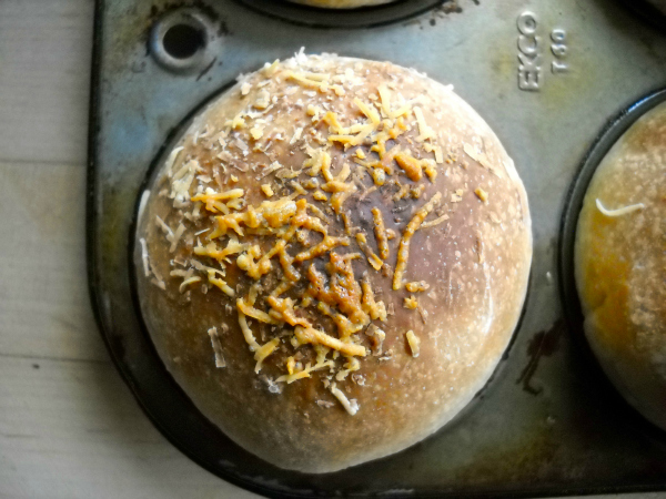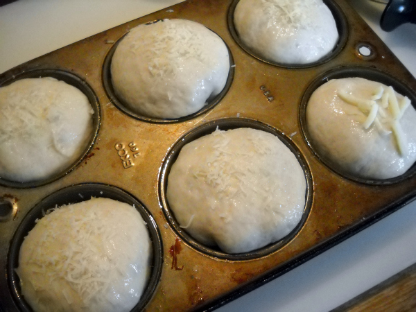 Preheat oven to 425°F. Grease a 12-cup muffin tin with about 1/2 teaspoon olive oil in each cup. Bring the dough to room temperature.