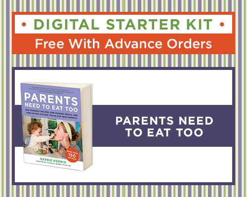 As a little incentive—and a thank-you—HarperCollins and I have put together a suh-weet Parents Need to Eat Too Digital Starter Kit, which we’ll send to anyone who provides proof of a pre-order. Yes, even the lovely folks who already received bookplates! It gives you a sneak peek at some of the book’s contents, as well as exclusive bonus material that’s not in the book.