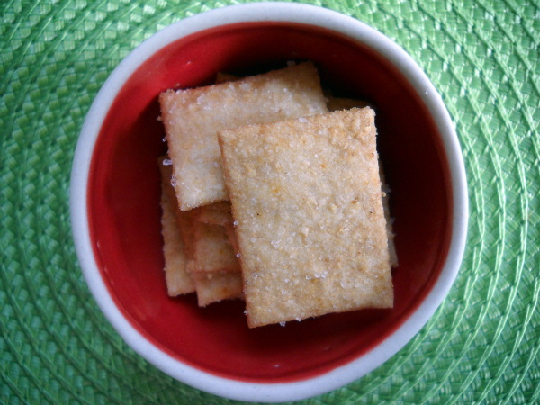 Sometimes, though, I forget that it’s my turn until 10:00 the night before. And sometimes, my well-stocked snack shelf doesn’t contain enough of any one nutritious, appealing, nut-free thing to feed 20 kids. When that happens, I pull out the flour and make Wheat Thins.