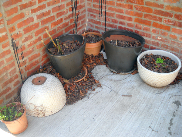 What happens when a confirmed black-thumb acquires a newly-cemented backyard? Container gardening a la Three Stooges!