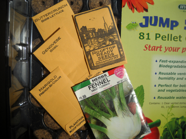 Except for the garden-variety (ahem) fennel, these are from Rooftop Ready Seeds, a small company based right here in Brooklyn. They’re culled from plants grown in New York City, on rooftops, in containers. Perfect.