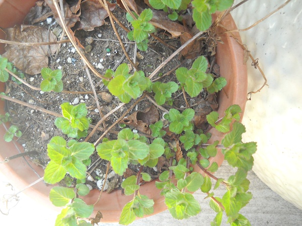 At first I thought these were the strawberries, but a quick sniff set me straight: mint.
