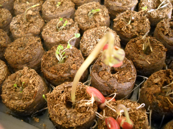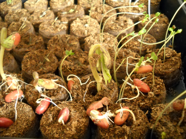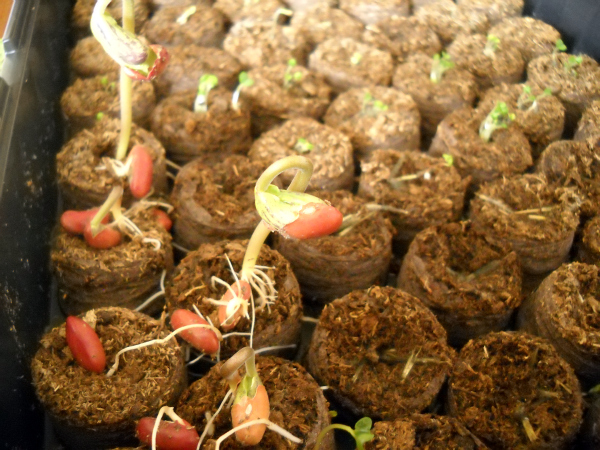 These little suckers were planted less than a week ago. Now, I’m no expert, but it looks like those green beans are just begging to be transferred into their new home. Right? Seriously, is that right? And the kale sprouts are hitting the top of the little greenhouse dome on the seed starter, so they should probably go too?