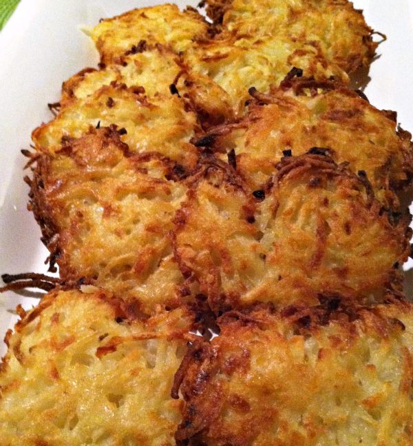 Last night my family gathered for the annual Hanukkah latke-palooza, and I provided the star of the show. I’m focusing on Weight Watchers again, so on Saturday night I made a quadruple-batch of Less-Oil Latkes—Stephen, Harry and I feasted on some that night, and we shlepped the rest to Long Island for the shindig yesterday. It worked perfectly. If I do say so myself, I’ve really got this down to a science now.