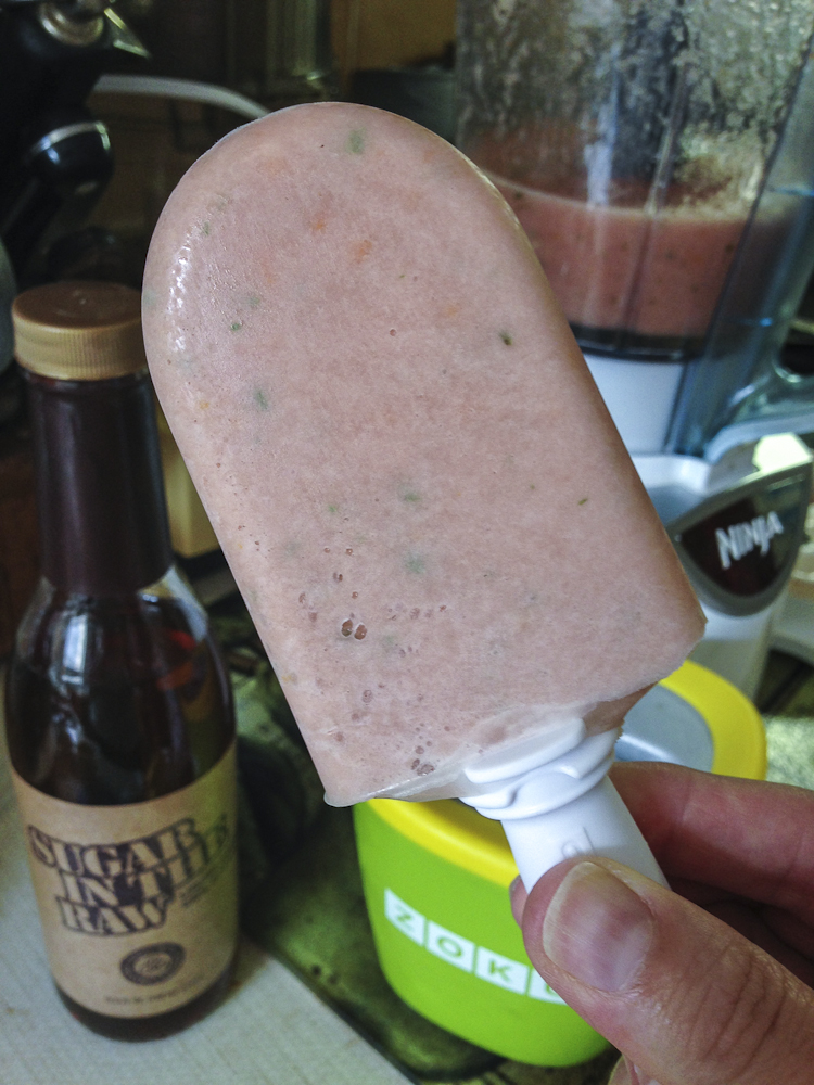As you can see, one of his guesses will soon lead to a new vegetable-based popsicle, this time with carrots. So, yeah. Trickery works, sometimes. Just be sure to fess up soon after, or your kid will never trust you again, which will doubtless lead to a life of debauchery. (My mom fed me brussels sprouts and I didn’t even know it! Pass the vodka.)